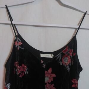 LUSH Black Velvet Floral Crop Tank Top Twist Front Camisole Dark