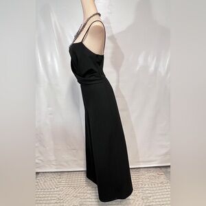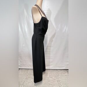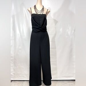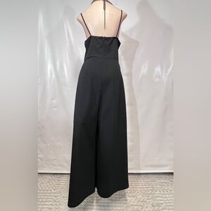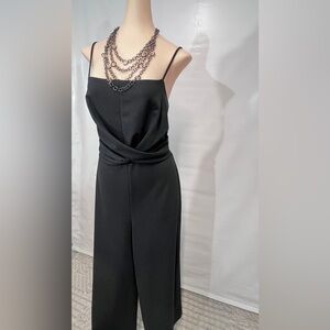 Black spaghetti strap twist front jumpsuit from LUSH, size M. Has wide cropped legs and zip back.