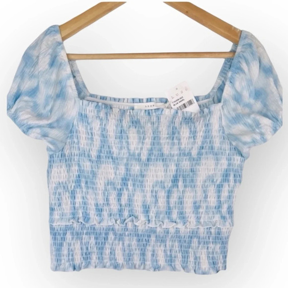 LUSH Blue Swirl Short Sleeve Smocked Top Size L