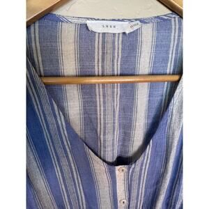 LUSH Boutique White and Blue Striped Loose Fit Flattering Top XS