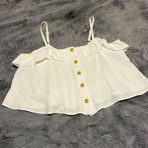 Add a stylish touch to your wardrobe with this Lush Claron Button Detail Cropped Top. The buttoned neckline and short sleeves make this top versatile, while the relaxed fit and flowy fabric make it comfortable to wear.