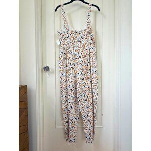 LUSH Cream Button Up Linen-Blend Abstract Printed Jumpsuit Size M