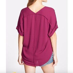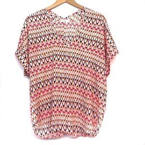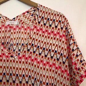 LUSH Cuff Jessie Cuff Sleeve Woven Tee Geometric Cream Orange Pink Blouse Top S