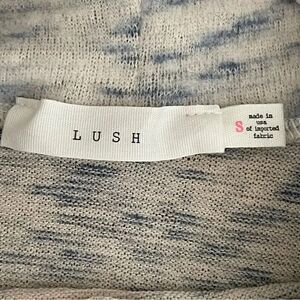 LUSH DRAWISTRING TNECK TOP CREAM BLUE Cropped Long Sleeves Soft Womens S
