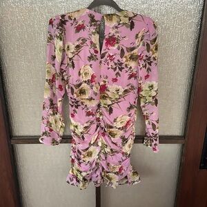 LUSH Mauve Floral Ruffle Hem Rouched Surplice Bodice Long Sleeve Mini Dress Sm
