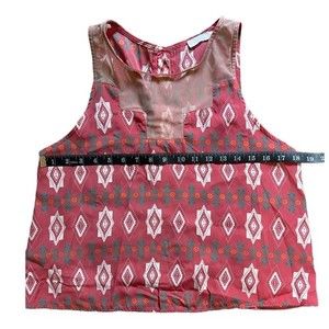 LUSH Medium Open Back Tank Top Aztec Pattern, Mesh Cutout, Tribal Sleeveless Top