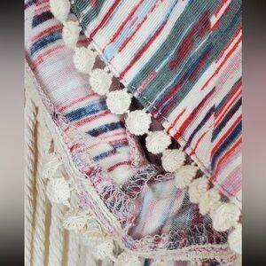 LUSH | Off the Shoulder Striped & Embroidered Pom Poms Blouse Size Large