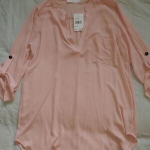 LUSH Pink Relaxed Mandarin Collar Blouse Size Small