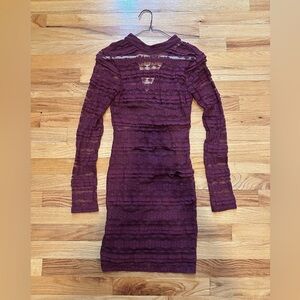 LUSH Reece Burgundy Lace Long Sleeve Bodycon Dress size XS