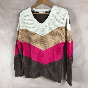 LUSH Ribbed V-neck Colorblock Chevron Sweater SMALL