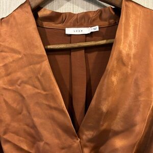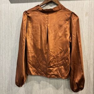 LUSH Rust Orange Satin Long Sleeve Blouse with Tie Front