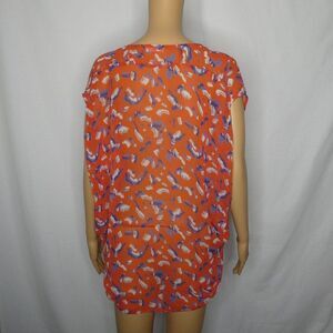 LUSH Sheer Feather Abstract Print Blouse V Neck Sm