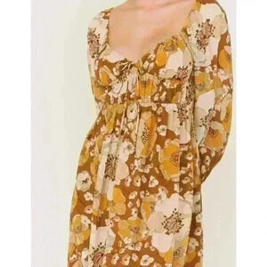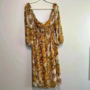LUSH WOMEN'S CARAMEL MULTI LARGE FLORAL PRINT MIDI DRESS size medium