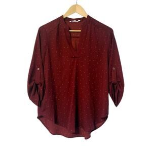 LUSH Warren Split Neck Polka Dot 3/4 Sleeve Blouse | S