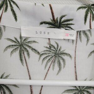 LUSH White Green Palm Tree Print Beach Vacation Super Soft Button Down 3X
