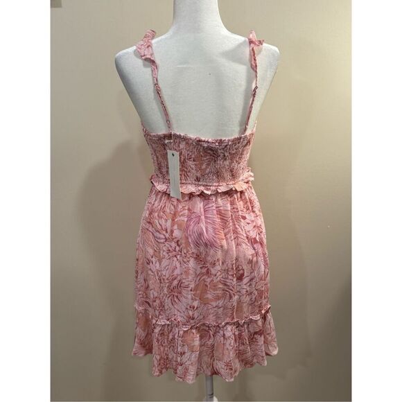 LUSH Women's Rayon Sleeveless Floral Smocked Mini Dress Pink Small NWT