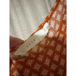 LUSH. Orange pattern women’s jumpsuit. Size large. Wide leg bottom. Playful and fun!