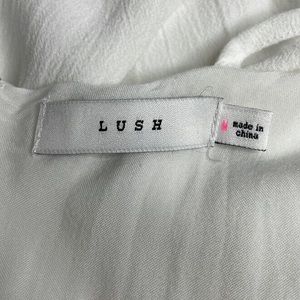 LUSH women’s sleeveless top with embroidery at top and along hem. Open back. EUC