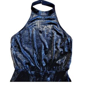 LUSH Black Textured Shiney Shimmer Halter backless Romper S