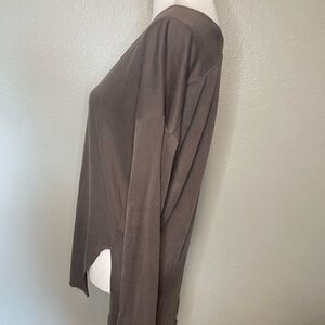 Total Fall Vibes! If you've never worn a tee by LUSH, you're missing out! Made with ultra soft material, this tee checks all the boxes for comfort and style. It is slightly oversized, has raw cut hem at bottom and sleeves and fits really well. Great condition.