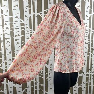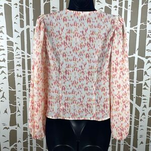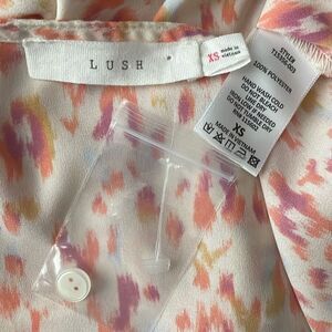 LUSH Pink Peach Yellow Pastel Leopard Print Button Front Blouse XS