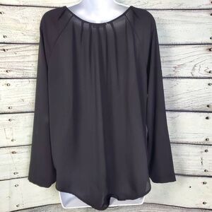 LUSH Women’s Black Long Sleeve Blouse Size L Split Neck Lightweight Top