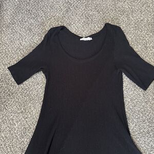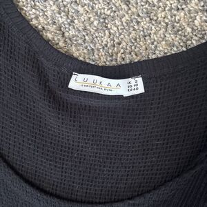 LUUKAA Black Asymetrical 1/4 length sleeve stretch dress. Size 10. In excellent pre-owned condition.
