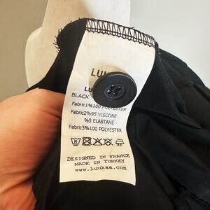 LUUKAA France Mixed Media Black Jacket Pleated Collar Stretch Size 4 Lagenlook