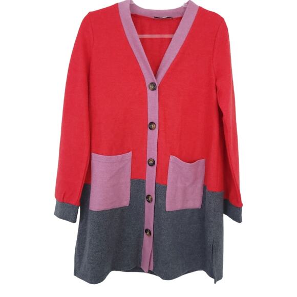 LUUKSE Long Cardigan Sweater Medium Colorblock Boyfriend Cardigan Casual