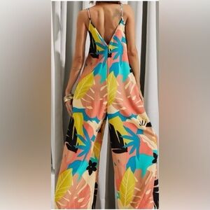 LUUKSE Tropical Print Wide-Leg Romper Jumpsuit Sz-Small