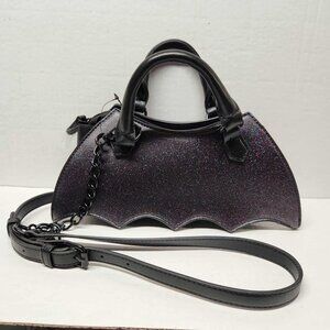 LUV Betsey Johnson Glitter Bat Baguette Crossbody Purse