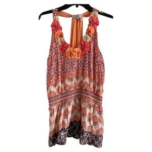 LUV STORI Women’s Multi Colored Floral Razorback Long Blouse/Mini Dress-Size M