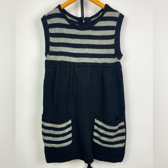 LUX Black Gray Striped Knit Empire Waist Sleeveless Babydoll Sweater Dress