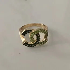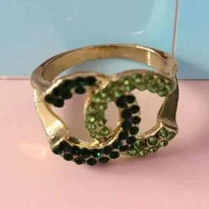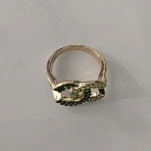 Elegant gold ring adorned with sparkling green crystals. Perfect for adding a touch of glamour to any outfit.
