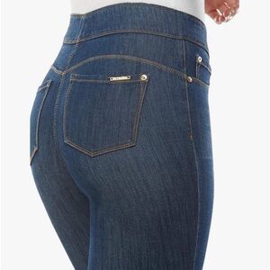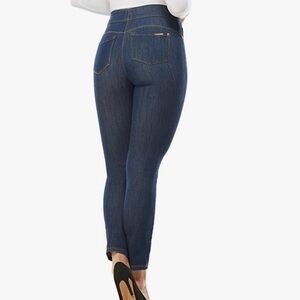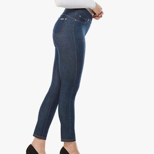 The skinny ankle is slim-fitting through the waist, hip and thigh, releasing slightly at the knee and tapering down the leg. Features a pull-on waist, concealed 4" midsection minimizer, 2" visible waistband, faux front pocket details and functional back pockets for the look of denim in a streamlined fit. Luxe Denim Slims offer ultimate comfort and compression in a luxurious look and feel: our exclusive Denim 360 fabric has 4-way stretch and 24/7 recovery, giving you a perfect fit every time.