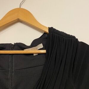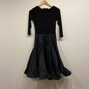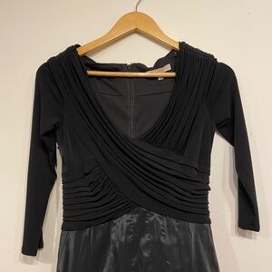 Black v-neck 3/4 sleeve midi dress. Perfect for a wedding or another special occasion. Stretchy top with puffed out taffeta skirt. Whimsygoth vibe. Size 4. In excellent condition.