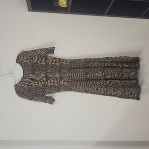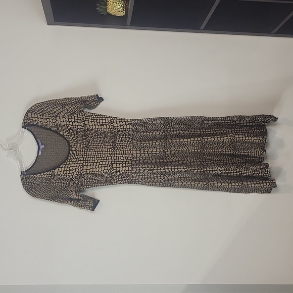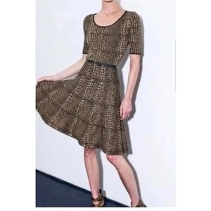 LUXE by CARMEN MARC VALVO Brown Black Snakeskin Print Fit & Flare Sweater Dress