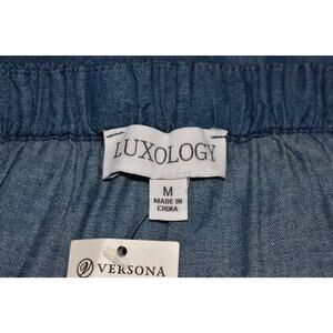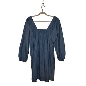 LUXOLOGY NEW $99 Blue Chambray Peasant Dress Puff Sleeve Square Neck Medium