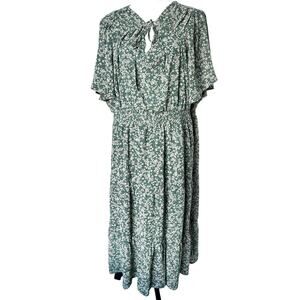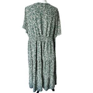 LUXOLOGY Women 3X Green Beige Floral Short Sleeve Elastic Waist Lined Maxi Dress