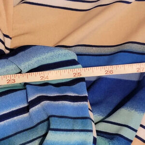 LUXOLOGY Women's Split V Neck Sleeveless Striped Shift Dress Size Medium Blue
