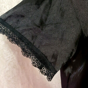 LUXURIOUS SLEEP SHIRT Button Down Kimono SHINY BLACK SATIN Lace WOMEN'S PLUS 1X