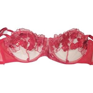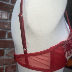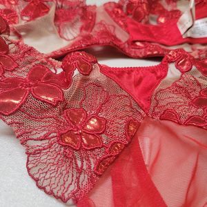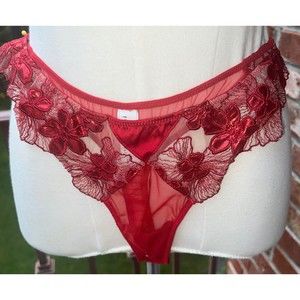 Very Sexy!! FLEUR DU MAL Ladies RED Metallic Floral Embroidered Appliqué Mesh Lingerie Set