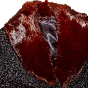 LUXURY PILE VINTAGE SZ M MEDIUM KARAKUL LAMB FUR MINK COLLAR SHORT COAT JACKET