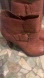 PANDORA BROWN LEATHER BOOTIES WITH HEEL PLATFORM AND BUCKLES WITH ZIPPER SIDES AS SHOWN AND COMES WITH ORIGINAL BOX