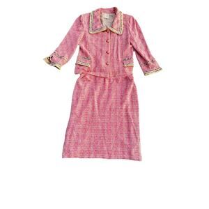 LUXURY ST. JOHN COUTURE PINK TWEED 2-PIECE SKIRT SUIT - SIZE 14 (Made In USA)