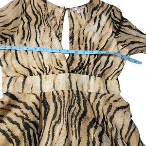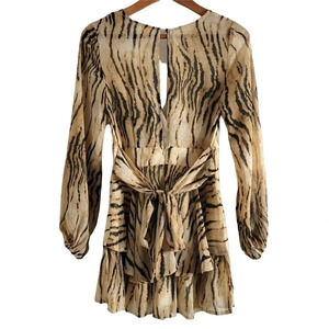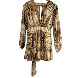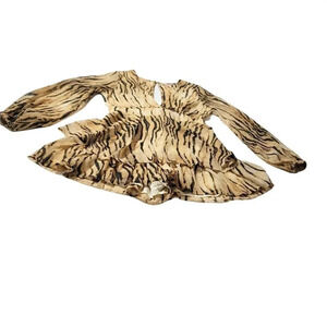 LUXXEL ANIMAL PRINT RUFFLE BEIGE & BLACK ROMPER LONGSLEEVE V-NECK SIZE S WOMENS