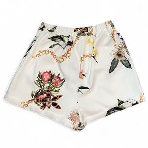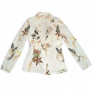 LUXXEL Floral Chain Print Blazer & Shorts Set Belted + High Waist Short Size S