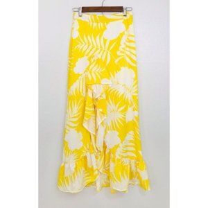 LUXXEL Tropical Floral Waterfall Ruffle High Slit Maxi Skirt - Latin Style, S