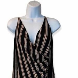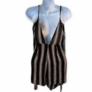 Luxxel women's cold should romper. Size small. Black Stripe. Adjustable straps at shoulder. Tie at end of arms. 100% polyester. Like new. No tears or stains.