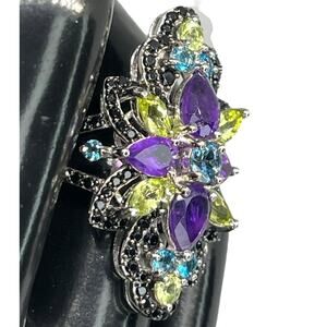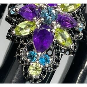LUXY Gems Natural Topaz Amethyst Peridot Spinel Sterling Silver Ring Luxury Sz 7